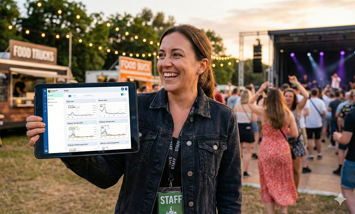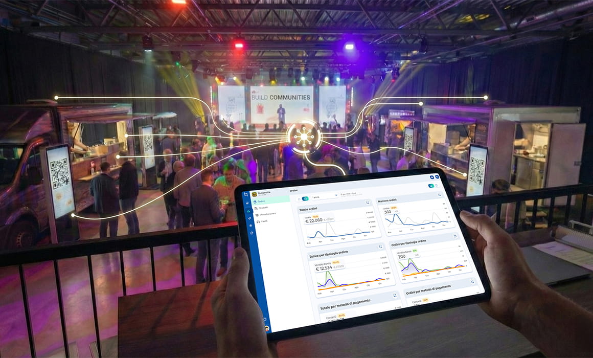 Ma quello che vale per Amani vale per moltissimi altri format: festival con più food truck in fila, serate aziendali con diversi corner bar, eventi diffusi in grandi spazi con tante aree F&B. Quando l’affluenza è alta e i punti ristoro sono numerosi, la vera sfida non è “riempire la sala”, ma gestire il flusso: ordini, pagamenti, incassi, donazioni, report.